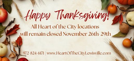 All Heart of the City locations will remain closed November 26th-29th. All operations will resume December 1st.
